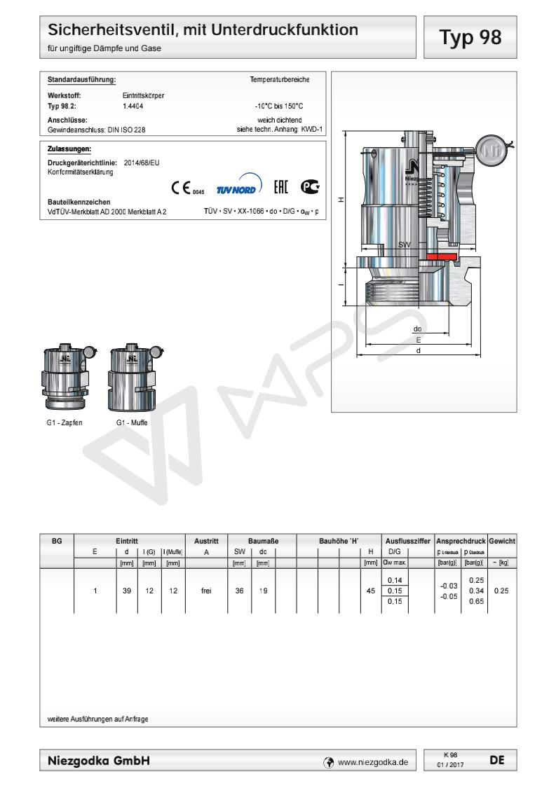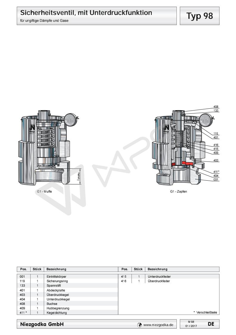 Typ 98 德國Niezgodka 安全閥、減壓閥、溢流閥