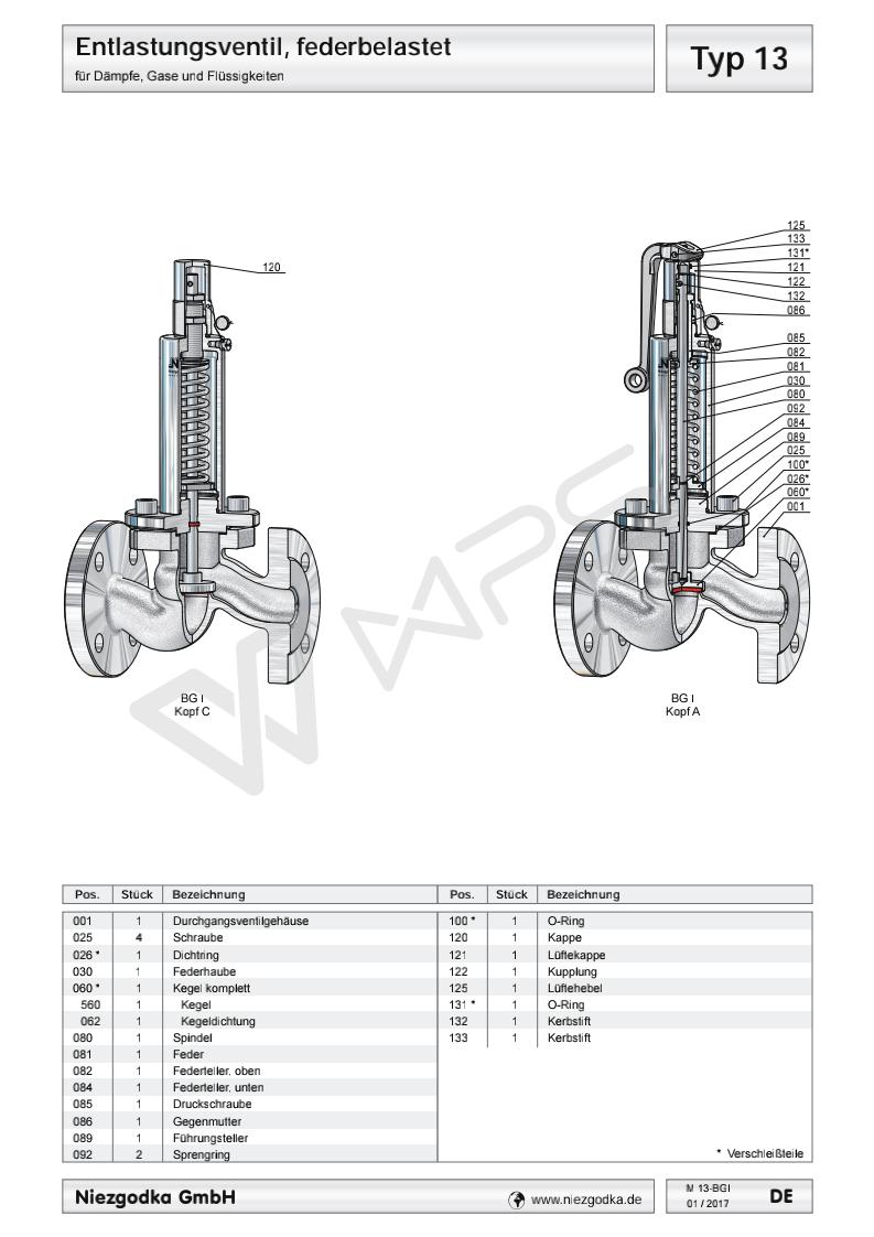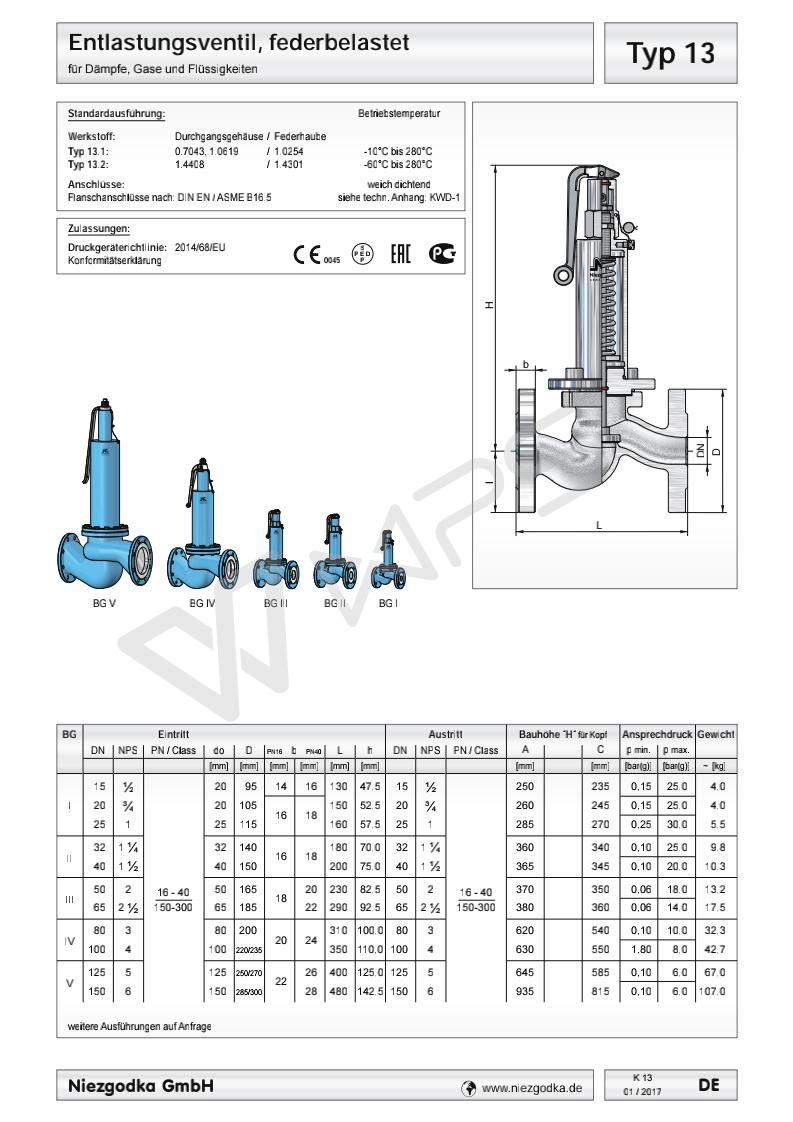 Typ 13 德國Niezgodka進(jìn)口法蘭安全溢流閥