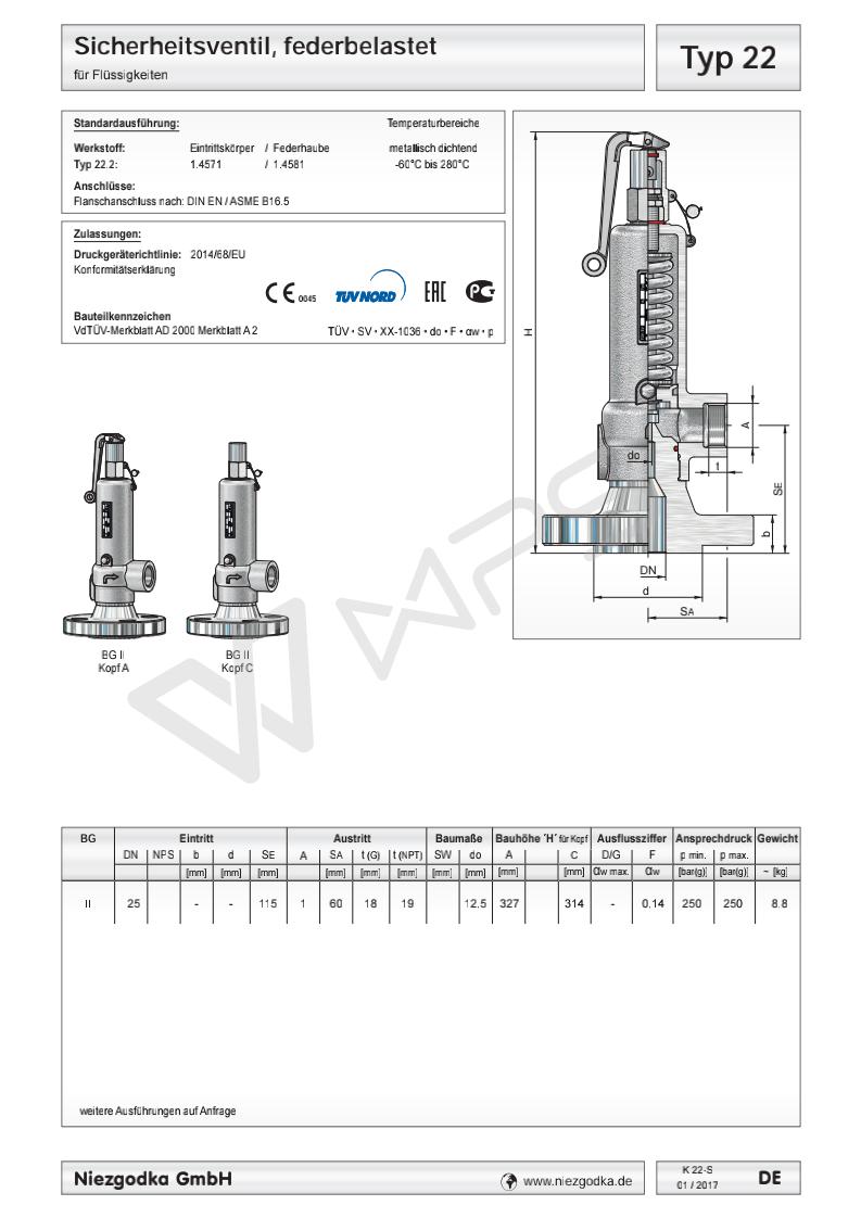 上一篇:Typ 22 Niezgodka進口高壓法蘭安全溢流閥的技術參數