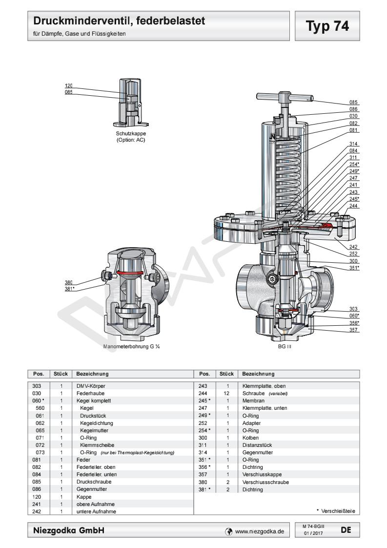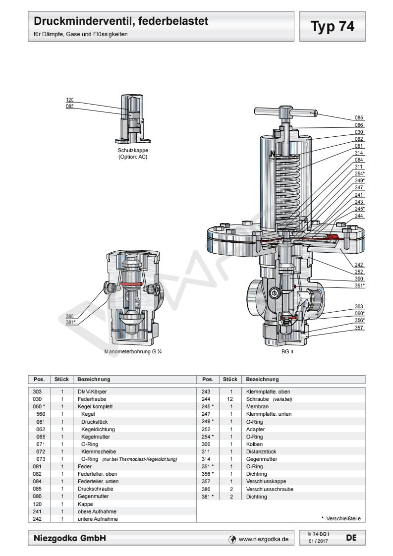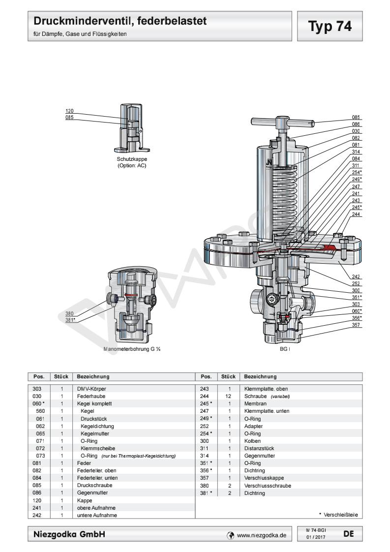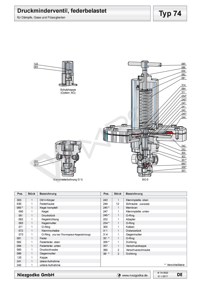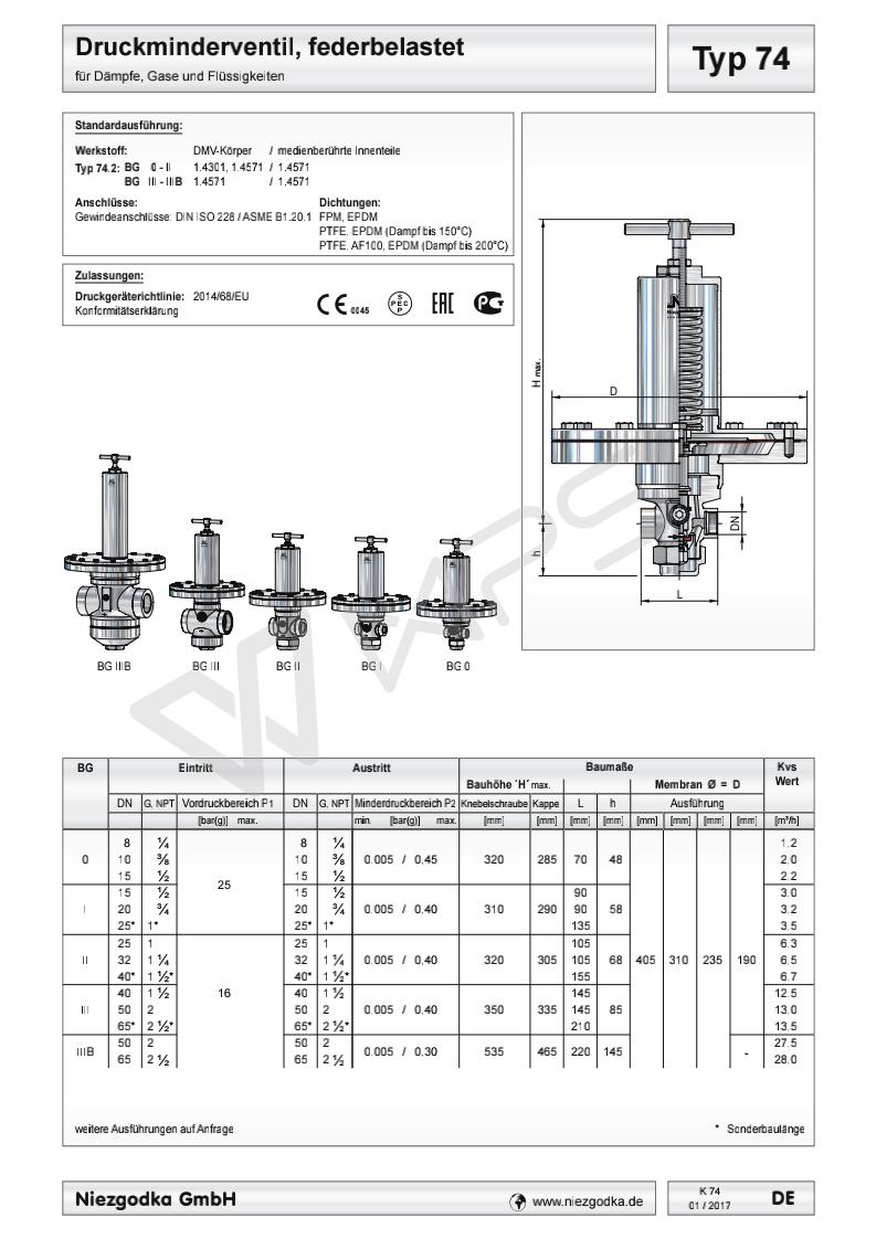 Typ 74 德國進口超低壓螺紋減壓閥的各項技術參數(shù)