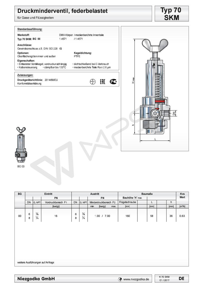 | Typ 70 SKM 德國原裝進(jìn)口衛(wèi)生級(jí)減壓閥的各項(xiàng)技術(shù)參數(shù) |