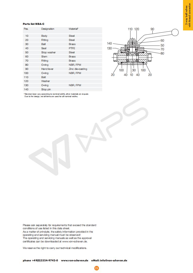 | 板式外螺紋鋼制低壓球閥Von Scheven的各項(xiàng)技術(shù)參數(shù) |